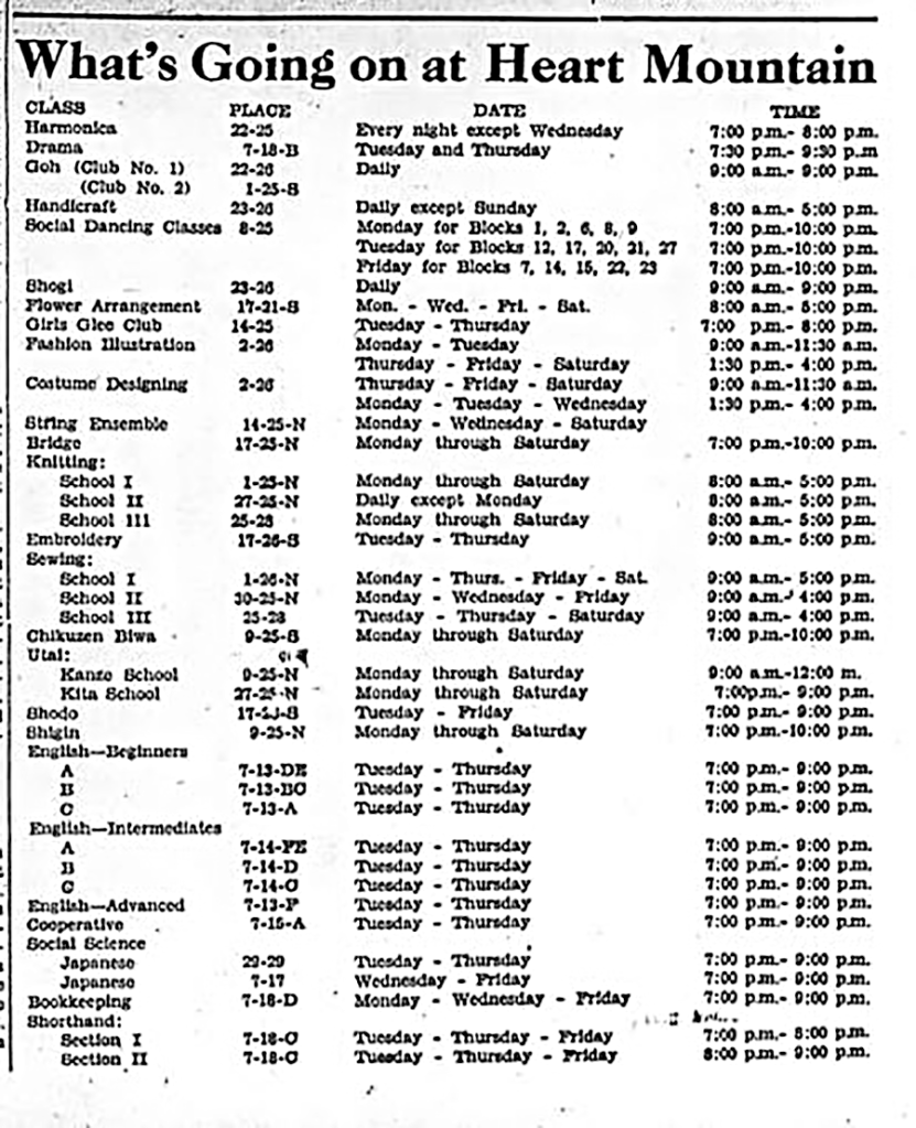 The living conditions within the barrack were accurate. I recall the stark barren rooms in the barrack without utilities—no water and no electricity beyond a single light bulb in the ceiling. The grammar schools were simply more barracks with benches built by the local carpenters from scrap wood. There is a good description of how the camp newspaper, The Sentinel, was produced in camp and printed in the town of Cody.