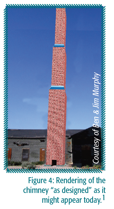 Figure 3 shows a rendering of the chimney ‘as built’ and ‘as designed’. The ‘as designed’ structure results in an attractive, 90-foot, proportioned structure, while the 75-foot chimney that was built looks “chopped off” by comparison.