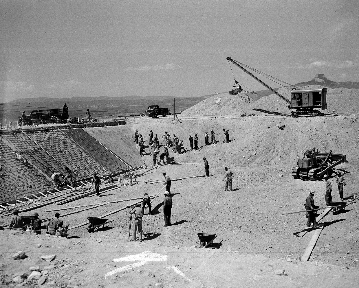 Photo: AP /Edward O. Eisenhand, 1942. “Workers build a reservoir in Cody, Wyo., where 10,000 Japanese American evacuees from the Pacific Coast will be relocated to the Heart Mountain relocation center. The evacuees will be kept busy converting this barren land into a pea, bean and potato farm.”